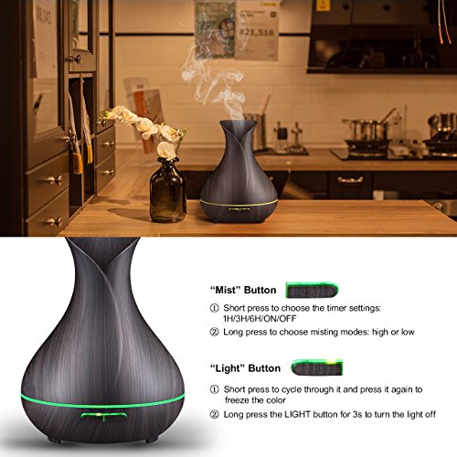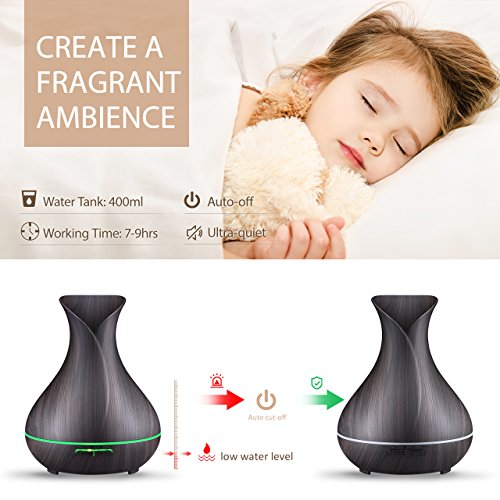 A Natural and Compact Design. The aromatherapy essential oil diffuser features super modern wood grain looking similar to a beautiful flower-vase, which will go with any décor perfectly, like a decorative piece, ideal for office, spa, salon, Yoga studio, child's room, physical therapy studios and any room you want aromatherapy
