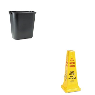 -. Title : KITRCP295600BKRCP627777 - Value Kit - Rubbermaid-Floor Cone,quot;Caution Wet Flrquot;, English/Spanish, 25 (RCP627777) and Rubbermaid-Black Soft Molded Plastic Wastebasket, 28 1/8 Quart (RCP295600BK)