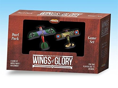 Wings of Glory is a game system that allows players to recreate aerial combat during World War I and II, using cards and miniatures to represent the airplanes and their maneuvers. In Wings of Glory players will control one or more airplanes, taking to the skies to engage their opponents in aerial duels, or trying to accomplish a specific mission, such as recon, escort, or bombing. WW1 Wings of Glory Duel Pack is the ideal starting point to play Wings of Glory. It includes everything you need to start playing: a rulebook with Basic and Standard rules, maneuver and damage cards, 40 counters, two measuring rulers, two airplane consoles and two airplanes, with special gaming bases, in 1/144 scale, fully assembled and painted. The pack also features Target, Trench and Anti Aircraft Machine Gun cards, to play a number of different scenarios.Feature
