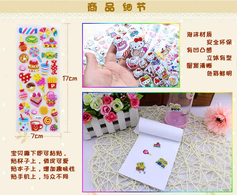 六一儿童节礼物卡通贴纸宝宝泡泡贴 幼儿园奖励粘小贴画粘纸玩具