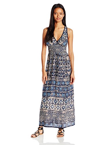 Product DescriptionThis v-neck maxi dress has a smocked back and adjustable straps for a great fit0