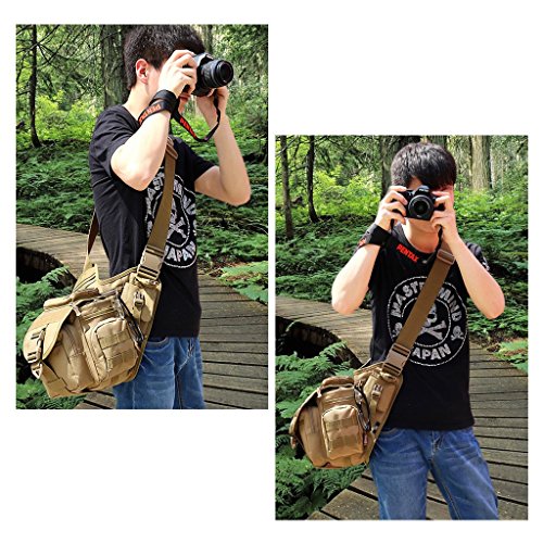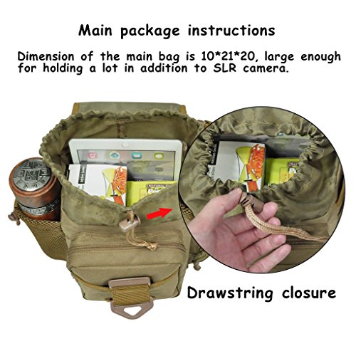 Material: The tactical bag is constructed by high-quality military nylon + waterproof coating material, high intensity and durable. Camera pouch is made of 400D oxford cloth and thicken shockproof sponge lining, soft and protective.