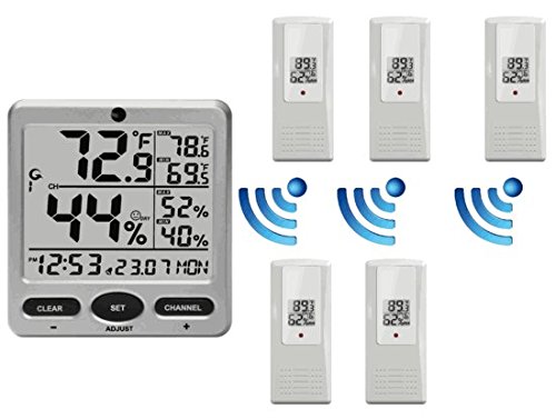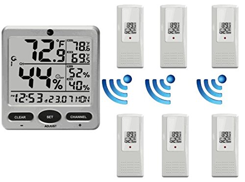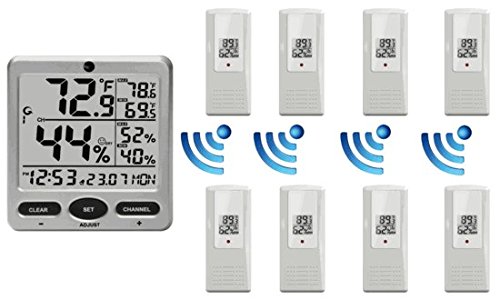 Simple to read, simple to use, and affordable, the WS-08 includes an indoor thermo-hygrometer in the console and can remotely read and update up to eight remote thermo-hygrometer sensors at the same from the large digit, uncluttered jumbo display.