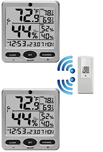 Includes two remote sensors (F007TH) - transmission range of up to 300 feet line of sight (100 feet under most conditions)
