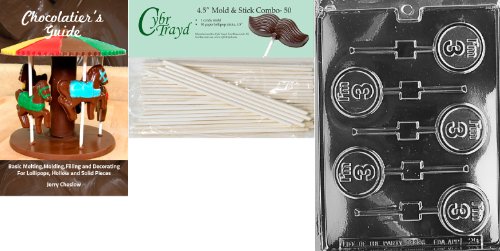 Cybrtrayd 'I'm 3 Lolly' Letters and Numbers Chocolate Candy Mold with 50 4.5-Inch Lollipop Sticks and Chocolatier's Guide