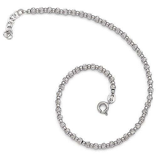 -. Binding : Jewelry -. Brand : The Black Bow -. Color : Silver -. Department : womens -. Feature : Tarnish resistant, rhodium plated sterling silver / Polished and diamond-cut finish / Adjustable 9 to 10-inch length / Closes with a sP.R.Ing ring clasp / Includes our custom gift box -. Label : The Black Bow -. Manufacturer : The Black Bow -. MPN : A8591 -. NumberOfItems : 1 -. PackageQuantity : 1 -. PartNumber : A8591 -. ProductGroup : Jewelry -. ProductTypeName : FINENECKLACEBRACELETANKLET -. Publisher : The Black Bow -. Studio : The Black Bow -. Title : 3mm Diamond-cut Beaded Anklet in Rhodium-Plated Sterling Silver, 9-10 Inch