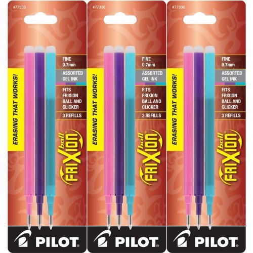 -. Title : Pilot Refills for Frixion Erasable Gel Ink Pens, Fashion Assorted, Pack of 9 (77336)