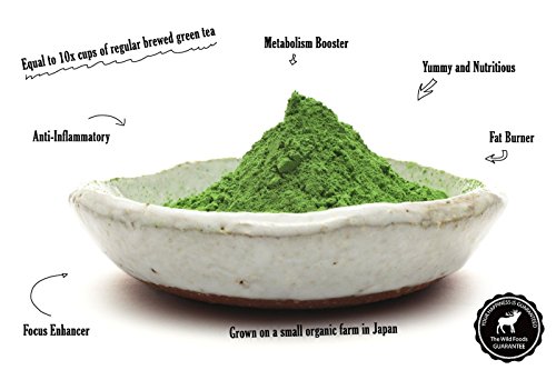 - Feature : Wild Matcha is an Antioxidant Powerhouse Superfood! One cup of Wild Matcha is equal to 10 cups of regular brewed green tea in antioxidant and nutritional value! Contains 136 times the green tea catching than regular brewed green tea. A natural metabolic stimulating fat burner! Wild Matcha is Non-GMO, Gluten-Free, Organic, Pesticide Free, Shade Grown, JAS Organic Certified, Kosher and Vegan Friendly! / Wild Matcha is grown on an award-winning Organic tea farm located on a foggy mountainside in Kyoto, Japan. The farm has been in business for over 100 years, winning numerous awards along the way. Wild Matcha perfectly embodies the Wild dedication to quality. Wild Matcha is Japanese shade-grown Matcha Green Tea Powder of the highest quality grown in a climate renowned for growing the best matcha in the world! / Fat Burner and Metabolism Enhancer: Wild Matcha contains polyphenols ECGG, a thermogenic ingredient known to boost metabolism. Not only do you get the antioxidant benefit from consuming Wild Matcha, but you also get fat-burning and metabolism boosting! Polysaccharides help regulate blood sugar levels. The powerful antioxidant catechin found in matcha have a powerful anti-inflammatory effect. / Natural Mood and Energy Enhancer - Wild Matcha contains caffeine, which is released into the bloodstream slowly providing a healthy and sustained boost of energy and mental focus and clarity! Boosts Metabolism and helps burn calories all day! Releases caffeine into the bloodstream slowly to give you long lasting energy without the crash! The amino acid L-Theanine does numerous things for the body, including the production of alpha brain waves, which makes it great for working and studying! / Wild Matcha #2 is backed by the Wild Foods 100% No-Questions-Asked Money-Back Lifetime Guarantee! If you aren't completely happy for any reason, we will take care of it! With ZERO risk, what are you waiting for? It's time to add the amazing health benefits of Wild Matcha to your daily routine!