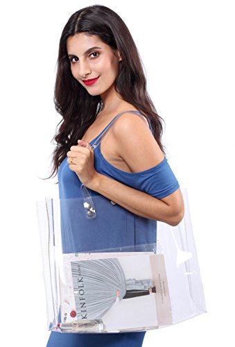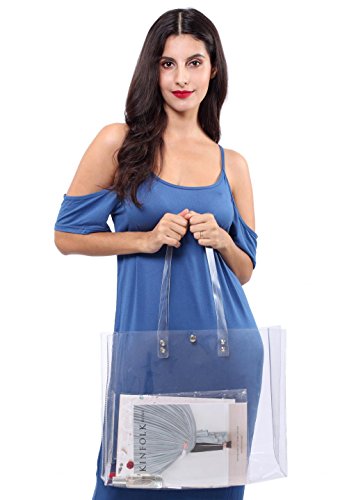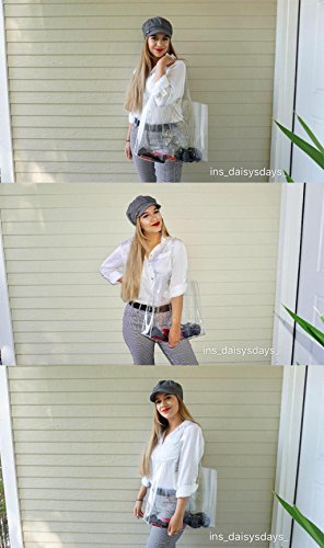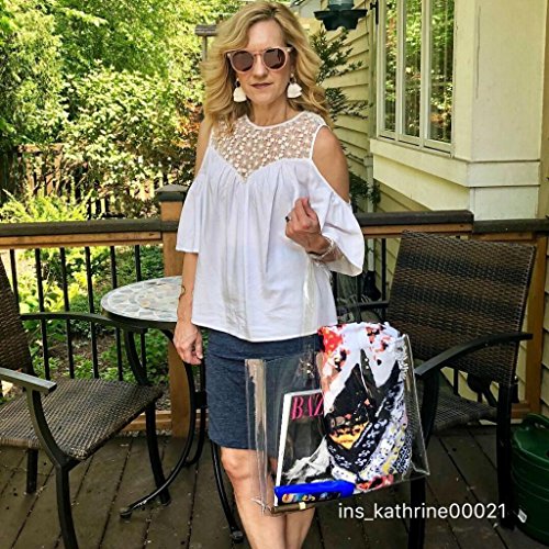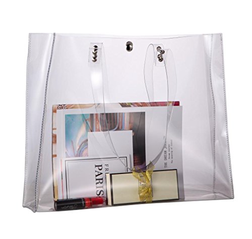 4.THE BEST GIFT: This clear tote bag can be used for different purposes. We bet that it will become your all-time favorite! It is also the best choice for gifts. This bag is very fashion, transparent design with buttons. Let you stand out from the crowd.