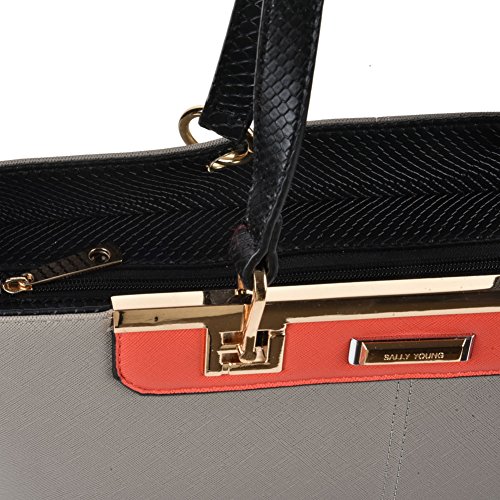 Women's Faux Leather Shoulder Bag Sally Young Top-Handle Handbag Fashion Multicolor Tote (Grey)