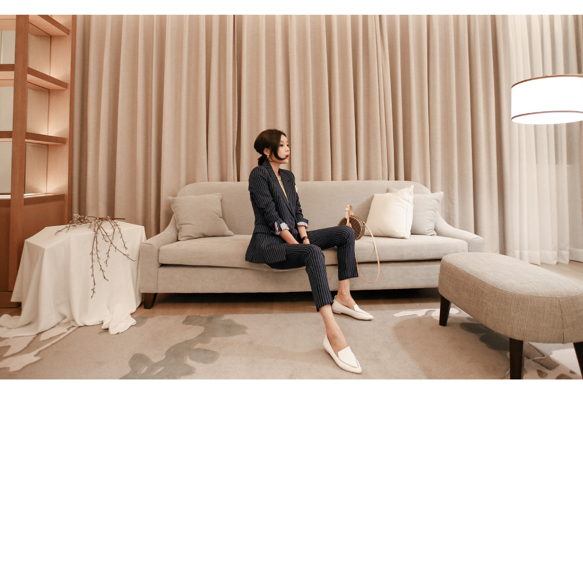 ショルダー・パッドがシルエットを整理してくれて体型を補正してくれて