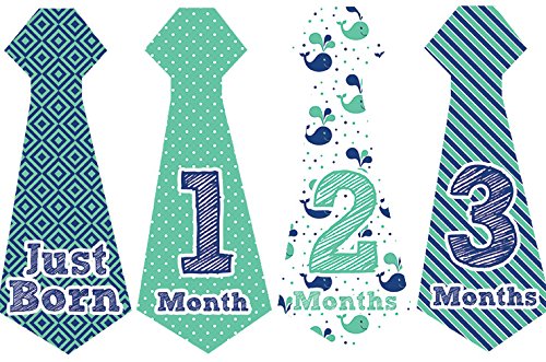 Belly Doodles 16 Monthly Baby Stickers Boys Necktie Nautical 6.6x2.5inch (1-12 Months)
