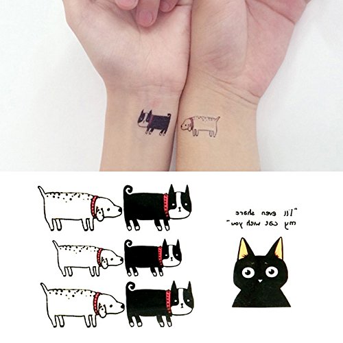 Oottati Small Cute Temporary Tattoo Cat Dog (2 Sheets)