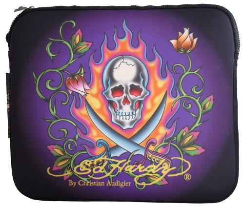 Product DescriptionEd Hardy Neoprene Computer Sleeve. Heavy Duty Zippers with Gun Metal Pulls. Print, Embroidery and Rhinestone Accents0