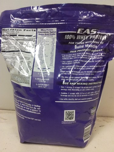 -. Binding : Health and Beauty -. Brand : EAS -. EAN : 0791083509725 -. Feature : Easy Open Space Saving Puncture Resistant Mylar Bag / High Quality 26g Protein / High Concentration of BCAA to Support Muscle Recovery and Growth / Mixes Easily -. IsAdultProduct : 0 -. Label : EAS -. LegalDisclaimer : follow all instructions and warnings -. Manufacturer : EAS -. Model : EA90 -. MPN : EA90 -. PackageQuantity : 1 -. PartNumber : EA90 -. ProductGroup : Health and Beauty -. ProductTypeName : HEALTH_PERSONAL_CARE -. Publisher : EAS -. Studio : EAS -. Title : EAS 100% Whey Protein 5 Lb Resealable Bag - Chocolate -. UPC : 791083509725