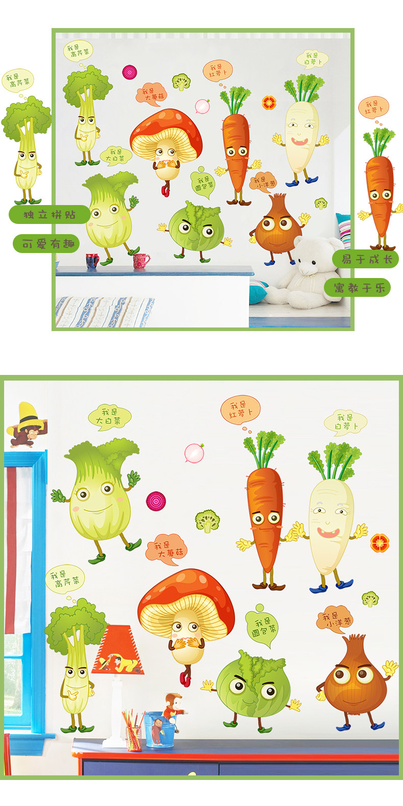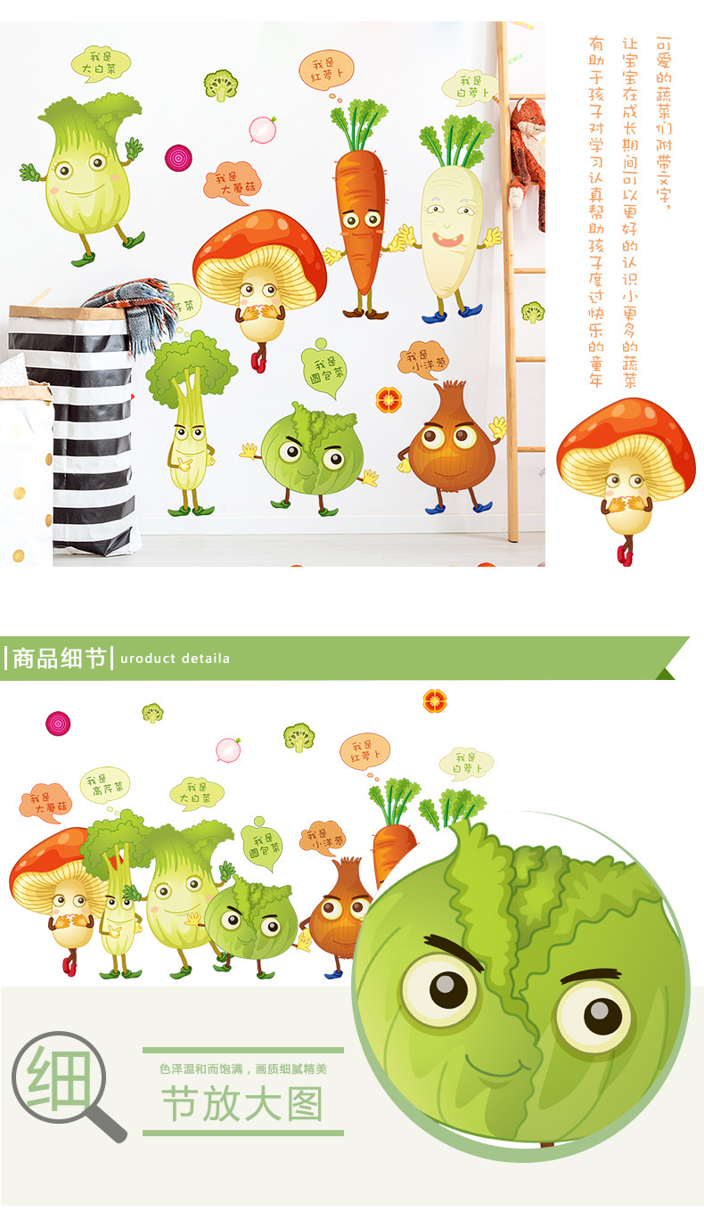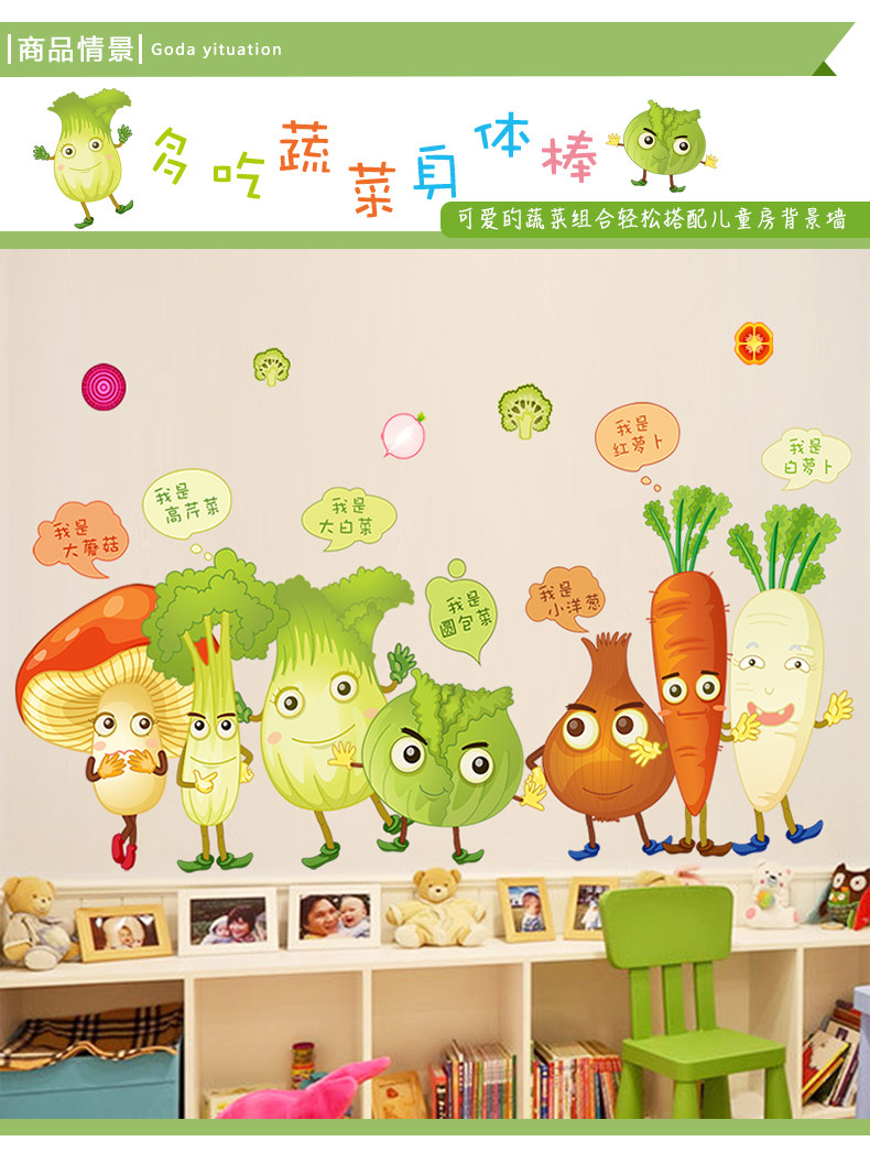 卡通可爱蔬菜墙贴画儿童房间幼儿园宿舍背景墙壁贴纸墙纸自粘贴画