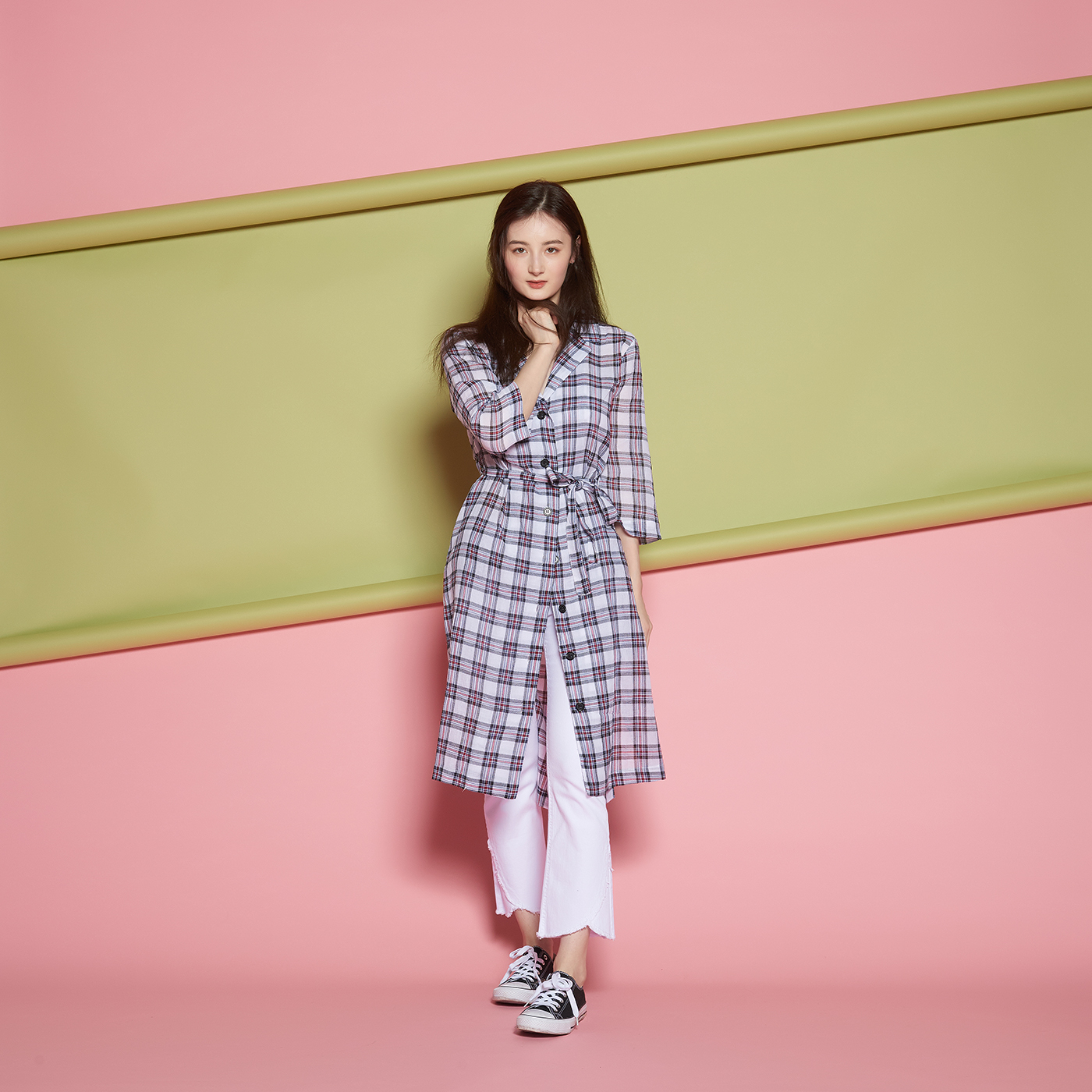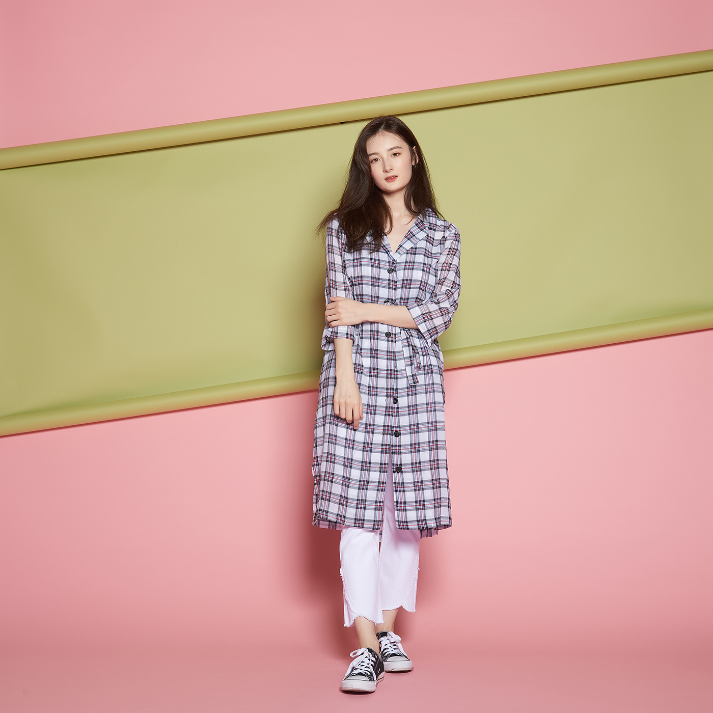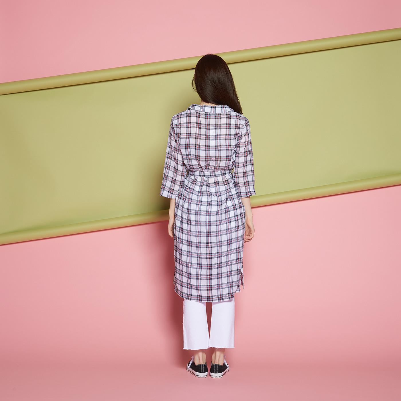 시크한 디자인의 편하고 시원한 체크 롱 셔츠입니다.