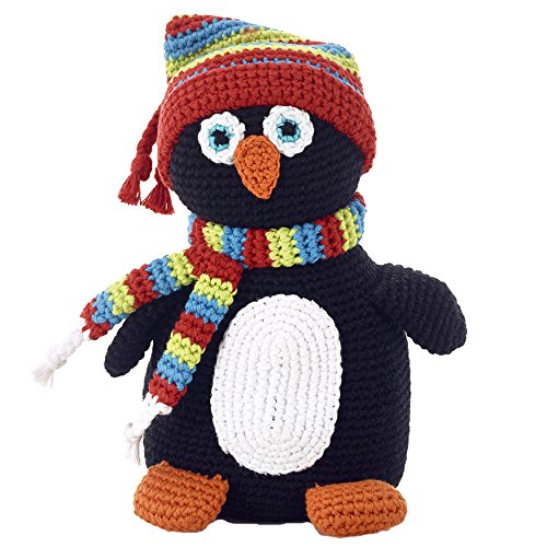 Cosy up with our cheerful, chilly, but warm-hearted friend. Handmade in a soft cotton yarn, with its cheerful face and bright orange beak, this cuddly penguin rattle will both entertain and comfort your baby. All the way from the Antarctic, this adorable little penguin is just asking to be played with and loved! Pebble products are made entirely by hand with natural materials and as such there will be slight variations in size, colour and design in line with the unique nature of this product. Materials: 100% cotton with 100% polyester fill. Size: height approx 18cm, width approx 13cm Care instructions: machine washable at 40 degrees and can be tumble dried on a low settingFeature