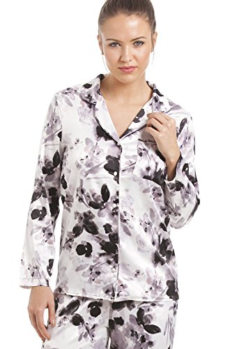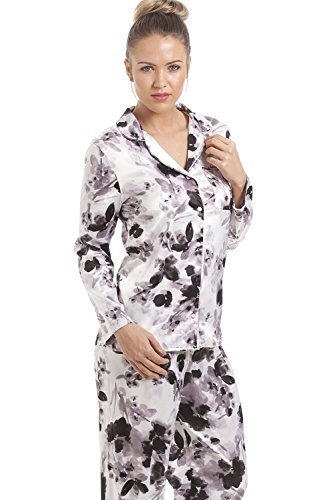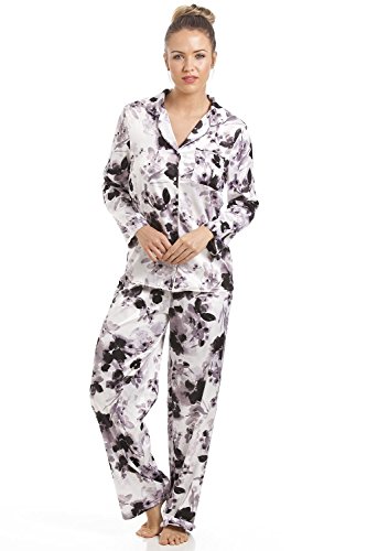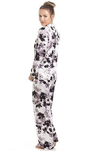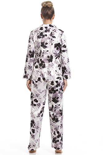 -. Title : Camille - Damen Schlafanzug aus Satin mit schwarzem Blumenmuster - grau