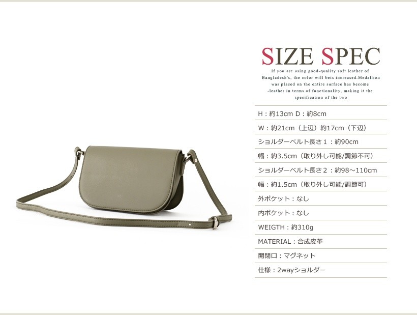 ●ショルダーベルト長さ1:約90cm×幅:約3.5cm(取り外し可能/調節可)