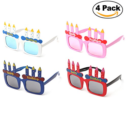 Newbee Fashion-Happy Birthday Cake Candles 4 Packs Shaped Party Sunglasses Fun Boys Girls Birthday Props (One Size Fits All)