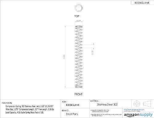 Compression Spring, 302 Stainless Steel, Inch, 0.30" OD, 0.035" Wire Size, 0.254" Compressed Length, 0.44" Free Length, 5.96 lbs Load Capacity, 32.07 lbs/in Spring Rate (Pack of 10)