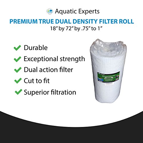 Premium True Dual Density Filter Roll - 18" by 72" by .75" to 1" - Aquarium Bonded Prefilter Media Pad Dye-Free - Custom Made In USA For Aquatic Experts