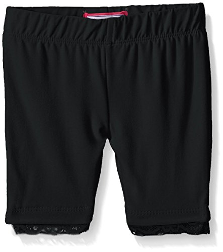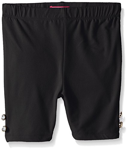 Peached bike short with rhinestone faux buttons at cuffs
