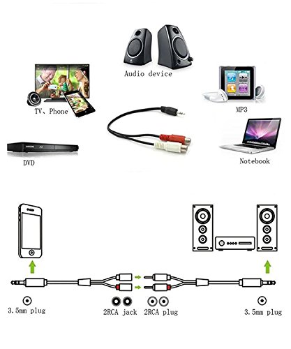 WOVTE 3.5mm Stereo Male Plug to 2 RCA Female Jack Splitter Adapter Y Cable 10.6 Inch Pack of 2