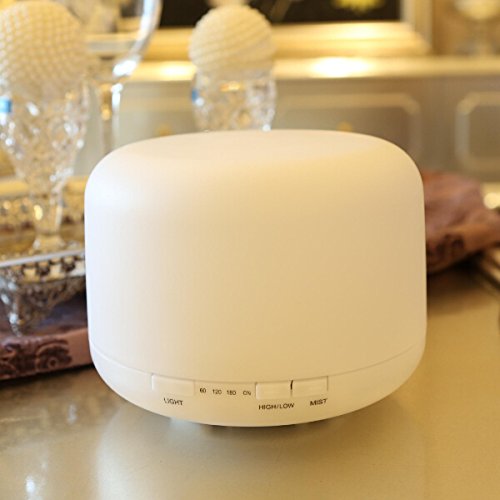 Ultrasonic Aroma Essential Oil Diffuser, 500ml Cool Mist Humidifier with 7 LED Color Changing Lamps, 4 Timer settings and Waterless Auto Shut-off