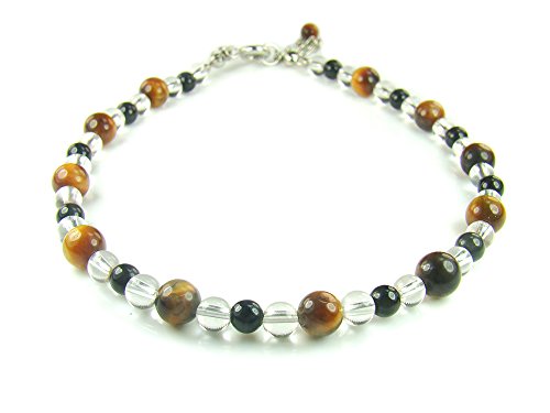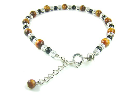 -. Title : AA0342 Tiger's Eye Onyx Clear Quartz Gemstone Healing Natural Crystal Flexible Base Finding Anklet