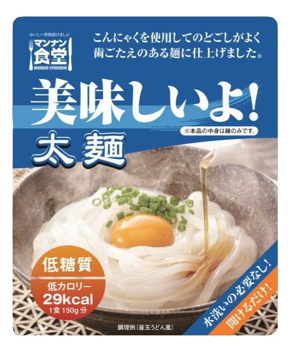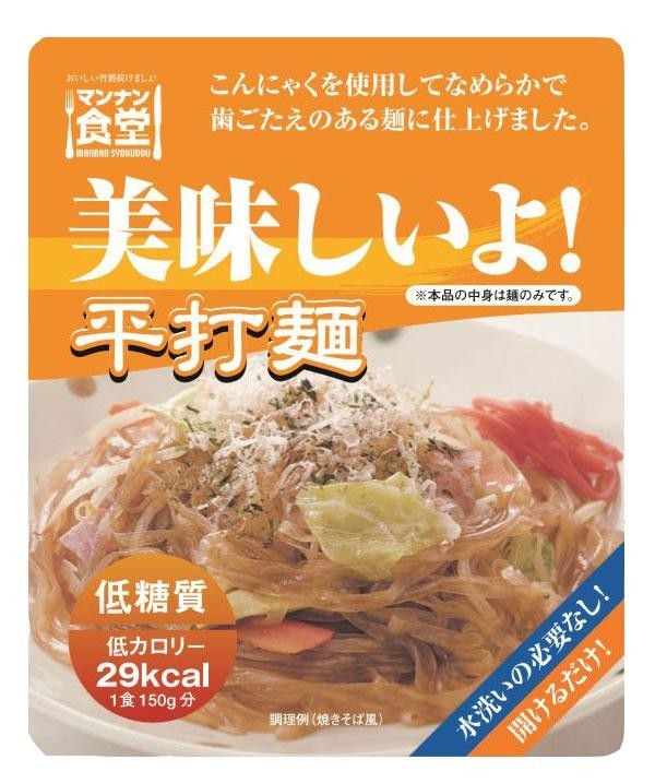 | 栄養成分 | (100gあたり) 【美味しいよ!平打麺】 エネルギー19kcal、水分94.2g、たんぱく質0g、脂質0g、炭水化物5.6g、糖質3.9g、食物繊維1.7g、灰分0.1g、ナトリウム2mg、食塩相当量0g 【美味しいよ!極細麺】 エネルギー16kcal、水分95.0g、たんぱく質0g、脂質0g、炭水化物4.7g、糖質2.8g、食物繊維1.9g、灰分0.1g、ナトリウム1mg、食塩相当量0g 【美味しいよ!太麺】 エネルギー19kcal、水分94.2g、たんぱく質0g、脂質0g、炭水化物5.6g、糖質3.9g、食物繊維1.7g、灰分0.1g、ナトリウム2mg、食塩相当量0g |