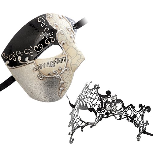 -. Title : Half Face Musical Phantom of Opera Men Mask Black Silver Series Couple Mask Sets (bk3)