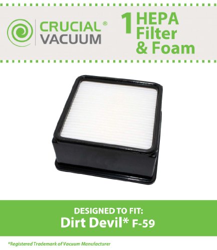 -. Title : 1 Dirt Devil F59 HEPA Filter Cartridge + Foam Designed To Fit Dirt Devil Total Vision Bagless UP.R.Ight Vacuum Model UD70220, Compare To Dirt Devil F59 (F-59) Part # 304707001, 3-01707-001, Designed and Engineered by Crucial Vacuum