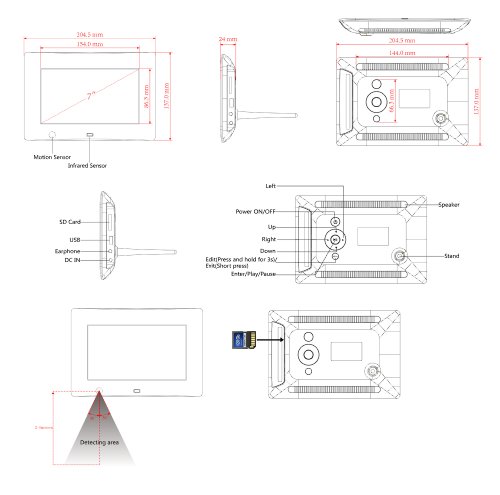 - Feature : New X08D available also. 800 x 480 pixels 7-inch widescreen digital photo frame (3 x Standard resolution) / Motion Sensor turns frame ON/OFF automatically when it senses you nearby / USB Flash Drive, SD Card & SDHC. PC Windows Compatible Only. / Auto Rotate Motion Sensor that rotates your photos when you rotate the frame to portrait position / Random Display, Split Screen Option, Mains AC Adapter included, Remote Control