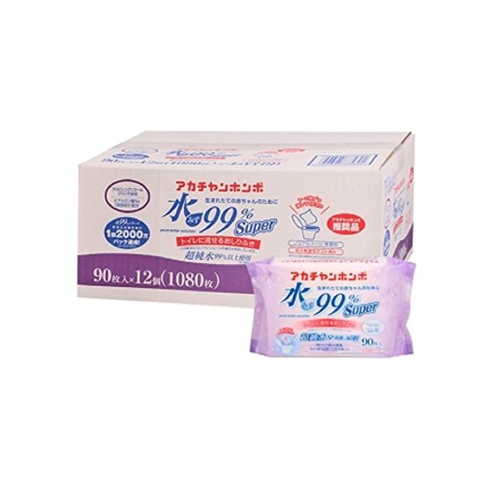 원본상품명: 水99% Super トイレに流せるおしりふき 90枚×12個パック