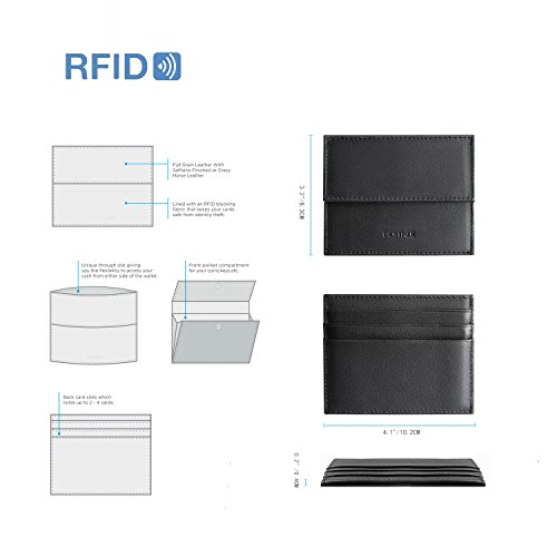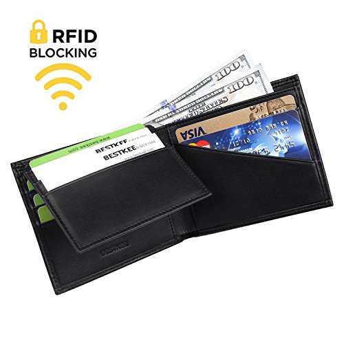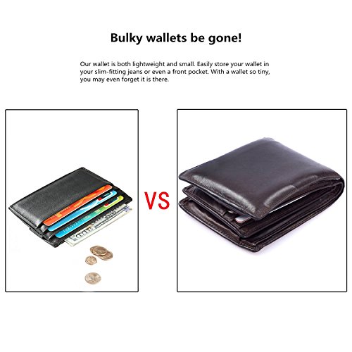 -. Feature : UNIQUE STYLISH DESIGN - This men wallet made of genuine leather and durable material. Minimalist style and looks classy. Best choice to replace bulky wallet. / PERSONAL SECURITY - Best RFID credit card protection for your identity from RFID scanning thieves and electronics pick pockets. / SIZE and FEATUREE - 9 credit card slots, 2 bill slots, 1 clear ID window. Size: 4.3*3.7*0.4 inches . As a credit card holder wallet, It fits any jeans or other pants pocket . Perfect solution for those looking to reduce what they carry daily. / 90-DAY ZERO RISK MONEY BACK GUARANTEE - The mens wallets trifold you purchase today will be automatically enrolled in our guaranteed lifetime replacement program. If at any point your RFID Bifold Wallet is damaged, We Will Replace It For Free. / APPLICABLE OCCASIONS - Beautifully Gift-wrapped to present to your special someone for a birthday, anniversary, valentine's day, Mother's/Father's Day, Christmas, New Year or another significant event