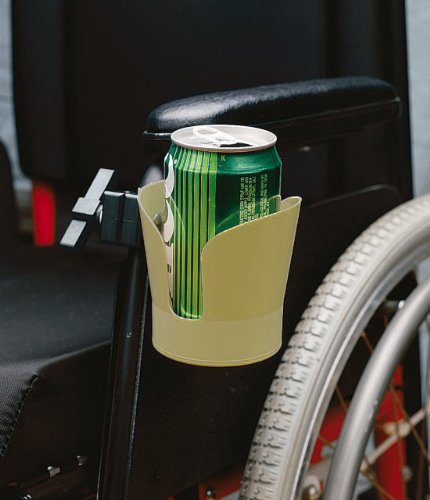 Studio : B.W. Publisher : B.W. Binding : Electronics Product Description Our wheel chair/walker cup holder easily clips onto any standard side tube so that hydration is at your finger tips. Mounting without the need of tools, this cup holder is perfect for coffee mugs, bottled water, and canned beverages. Open sides accomodate mug handles. Each measures 3 5/8" Diameter x 3.5"H with spring clip for mounting. 0