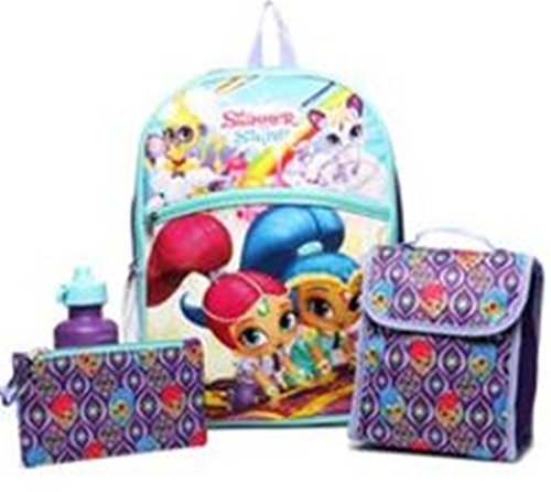 -. Feature : Shimmer and Shine 16 inch backpack set / Set includes backpack, foldable lunch bag, pencil case drink bottle and carabiner clip, / Adorable Shimmer and Shine graphics!