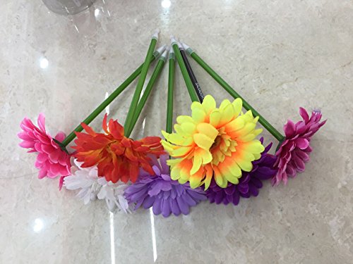 -. Feature : Approx. Size: 7" ( about 20cm total). / assorted colors daisy flower decor with green slender body. / comfortable touching. / The pen core can be replaced,but it also can be a good decoration for your room. / Black ink/ Blue ink