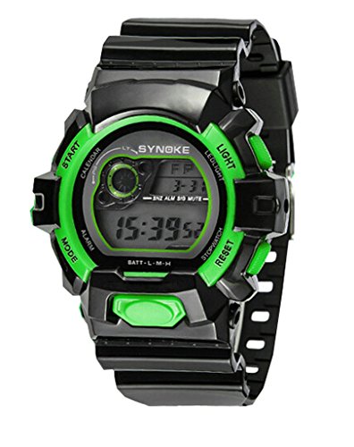 -. Binding : Watch -. Brand : YJLHCYGG -. Department : boys -. EAN : 6931444733084 -. Feature : Imported High quality movement / Pack: 1 pcs watch / 30 meters waterproof (not for diving and do not press button under water) / Resin band with buckle closure / Fashionable, very charming for all occasions. Amazing looking watch, a great gift for friends. -. Label : YJLHCYGG -. Manufacturer : YJLHCYGG -. MPN : LLSSB-025-heilv -. PartNumber : LLSSB-025-heilv -. ProductGroup : Watch -. ProductTypeName : WATCH -. Publisher : YJLHCYGG -. Studio : YJLHCYGG -. Title : Boys Digital Backlights for Ages 5-15 Boys with Back Light Alarm Stopwatch Black Green