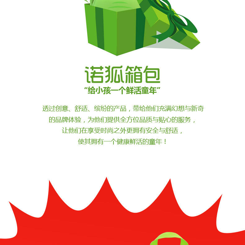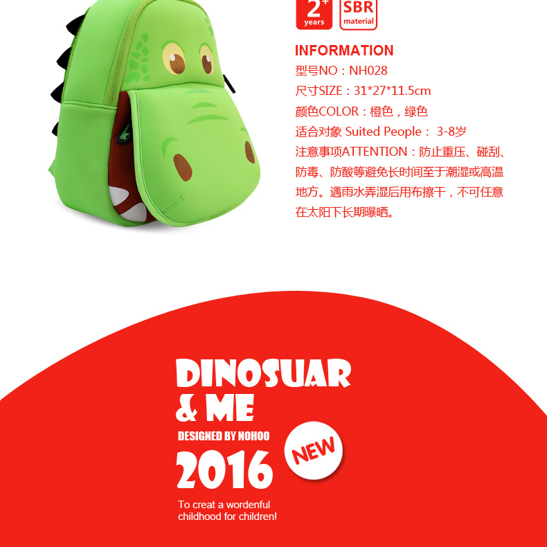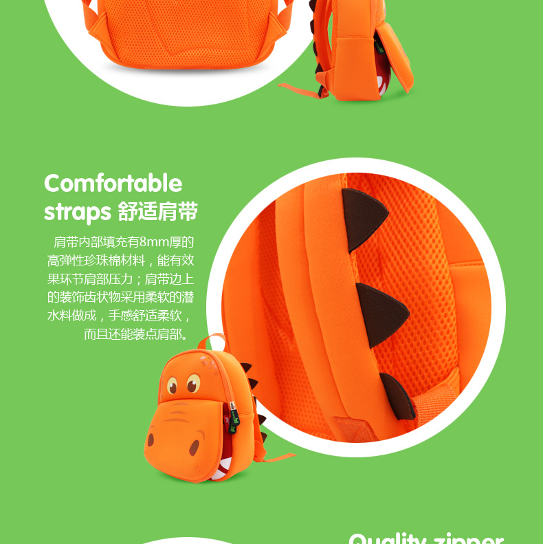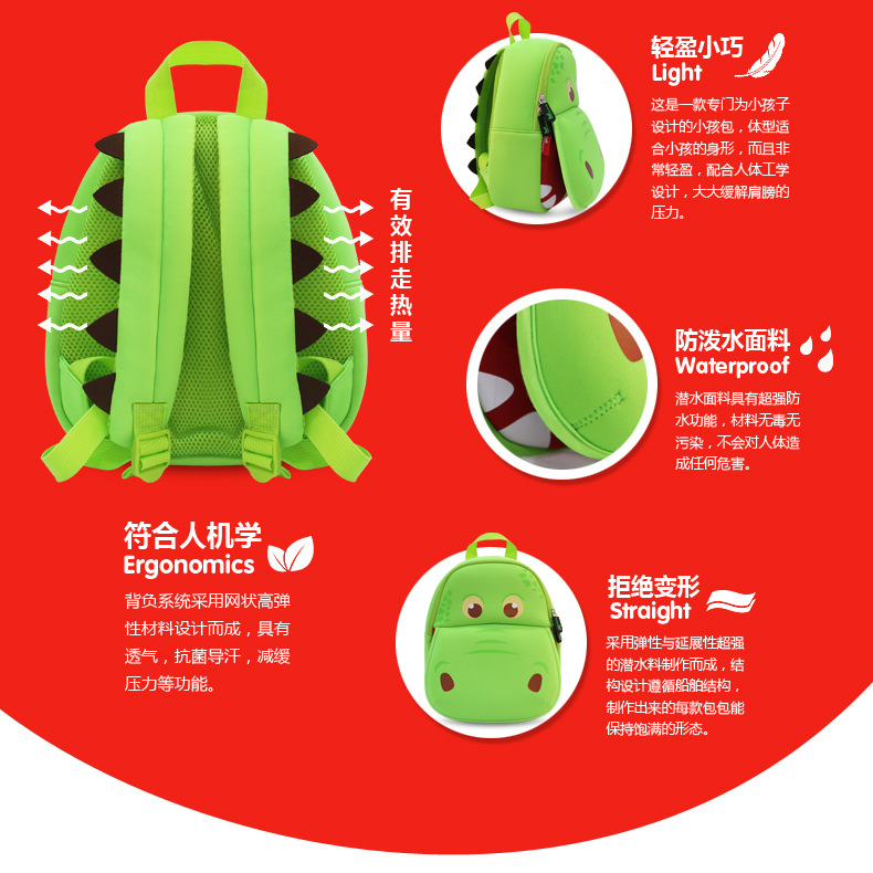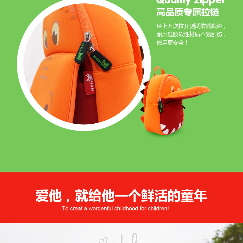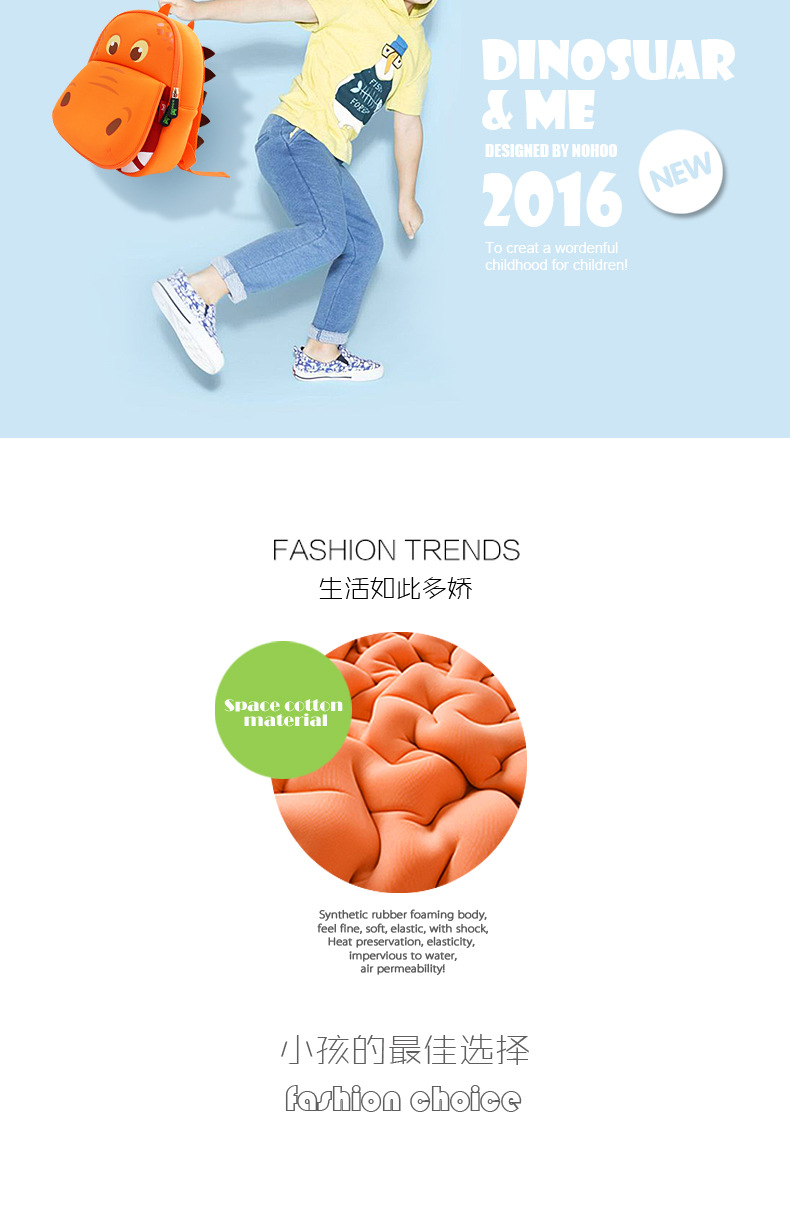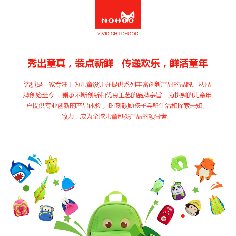 诺狐采用独特的Neoprene潜水料,有别于一般材质,潜水料具有良好的柔软性与弹性,防水防潮,质地轻盈等特点,有适用于专业潜水衣及各种运动领域,其立体塑形极具个性的特性更风靡时尚圈。诺狐童包独特的设计与良好的材质有别于一般的儿童包,立体结构剪裁,鲜艳大胆的配色,打材料的特性发挥到淋漓尽致,为我们的用户提供缤纷、舒适、健康的产品体验。