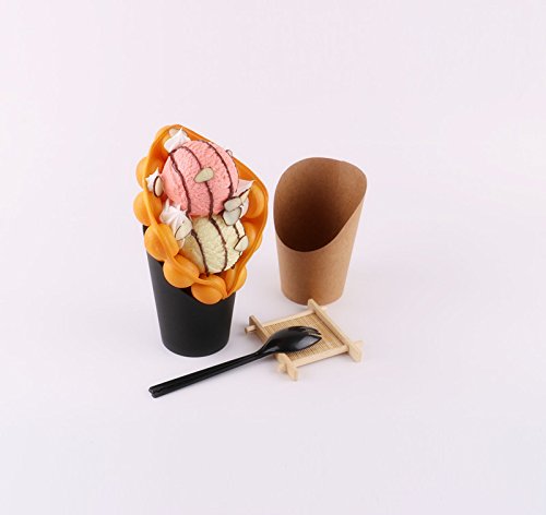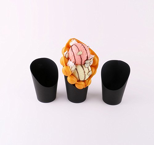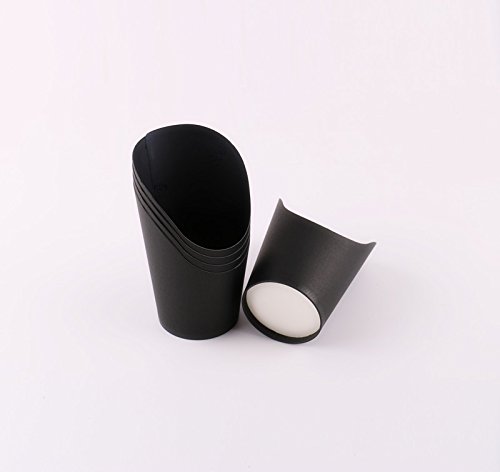 Cindy&Will 50Pcs Disposal Take-out Party Frozen Dessert Supplies Baking Cakes Egg Puff Waffle French Fries Chips Ice Cream Snacks Black Paper Cups Holder, 14oz