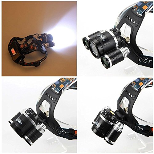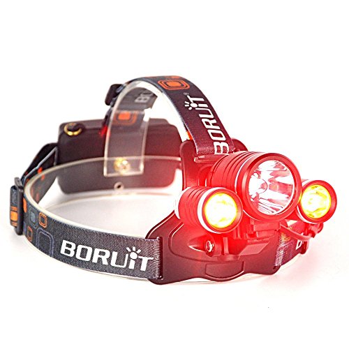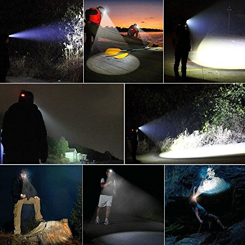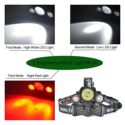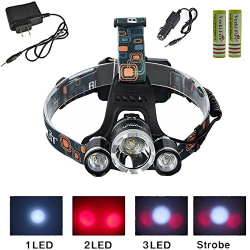 Veeki Red Color Shooting Tactical Headlamp with 2X Red Light + 1X T6 LED Headlight Torch Lamp Red Lights Headlamps for Hunting Night Fishing with 2pcs 18650 Battery and Charger