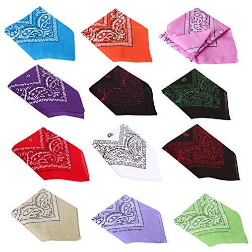 -. Feature : Bandanas are a unique fashion statemant that represents your individual style / Use them as: doo rags, head bands, wrist wraps, head scarves, pocket accessories, dog rags, handkerchief, napkins and much more / Many double-sided paisley and pattern P.R.Ints available to choose from / Size: 21 x 21 in (53.3 x 53.3 cm) / Set includes 12 different styles