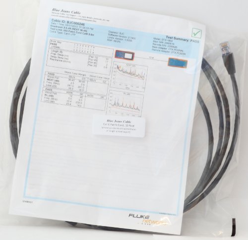 Certified 10 foot Black Cat 6 Patch Cable, Assembled in USA, Blue Jeans Cable brand, with Test Report