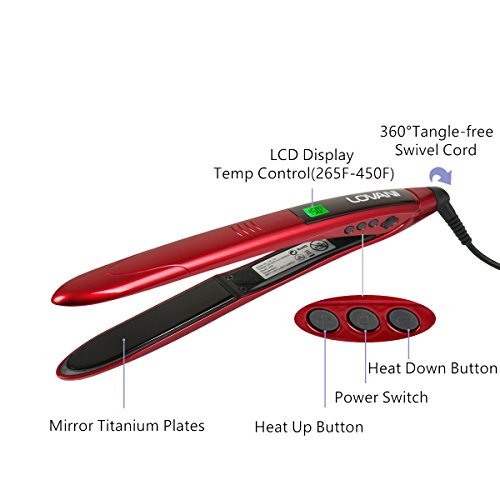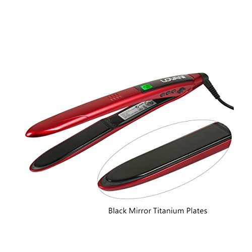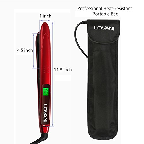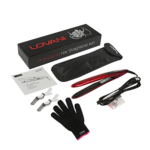 LOVANI Titanium Digital LCD Flat Iron 450F Temperature Control Dual Voltage Auto Shut Off Salon Hair Straightener with Heat Resistant Bag,Glove and 2 Clips