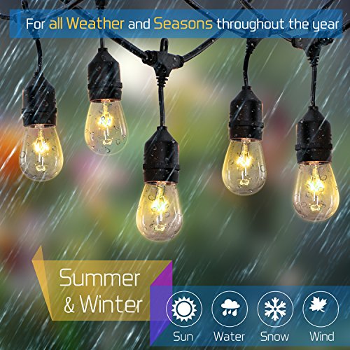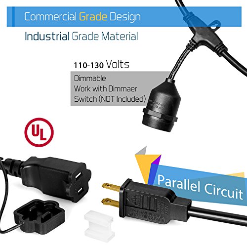 [Great for lighting festive interiors and exteriors] Our Heavy Duty Commercial Grade String Lights are sure to add flair to all your special events in Patios ,Backyard,Decks, porches, terrace, gazebo,walkways,bistro,party,cafe, restaurants,awnings, wedding tents, indoor and outdoor malls.