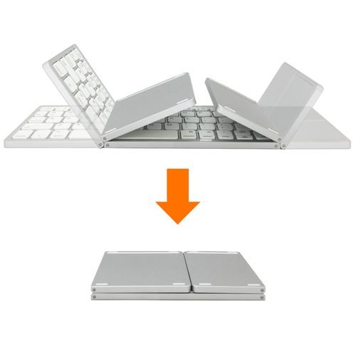 -. Feature : 折り畳んで持ち運べるBluetoothキーボード / 三つ折りタイプで抜群のコンパクトさを実現