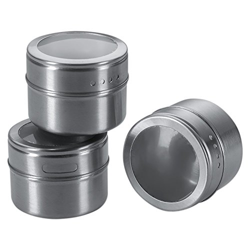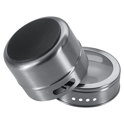Bekith 12 Pack Stainless Steel Magnetic Multi-Purpose Spice Storage Tins, Clear Top Lid with Sift or Pour, Magnetic on Refrigerator and Grill